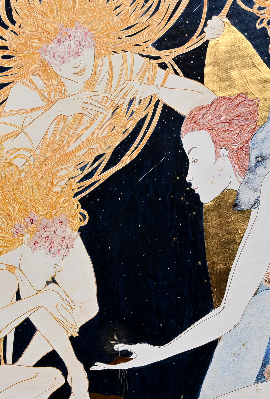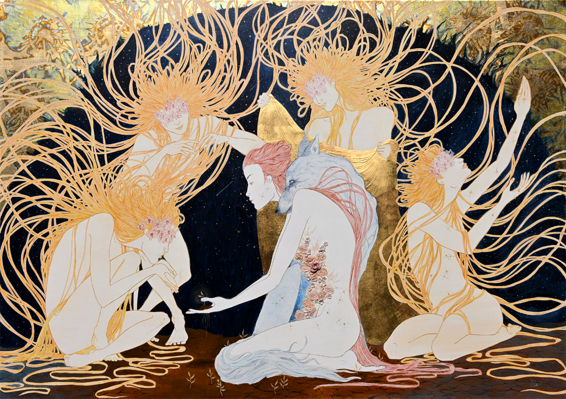 Acryl, 24Karat Blattgold, Schlagmetall und Modellierungen auf Leinwand
