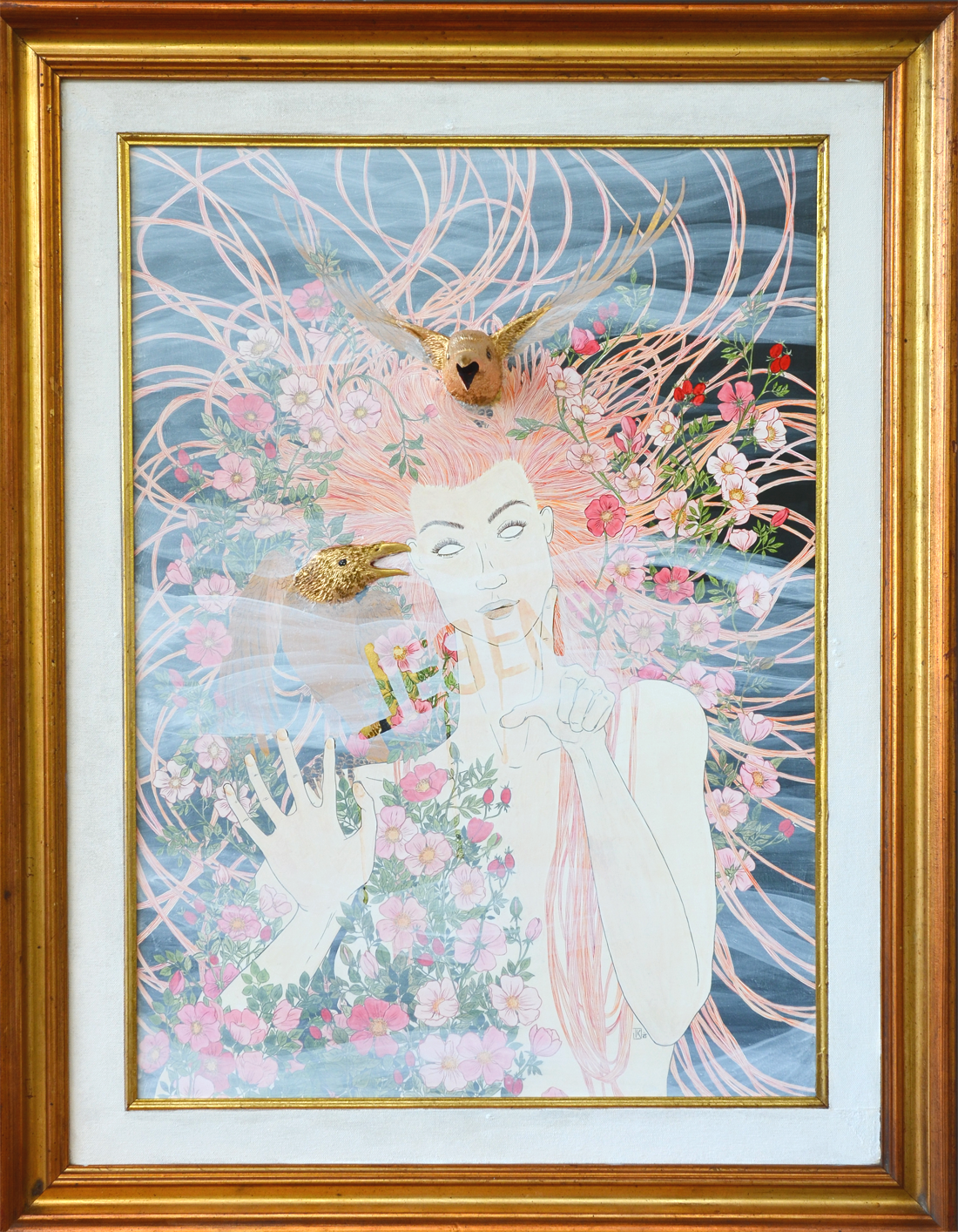 Blattgold und Stanzung auf Holz, gerahmt.